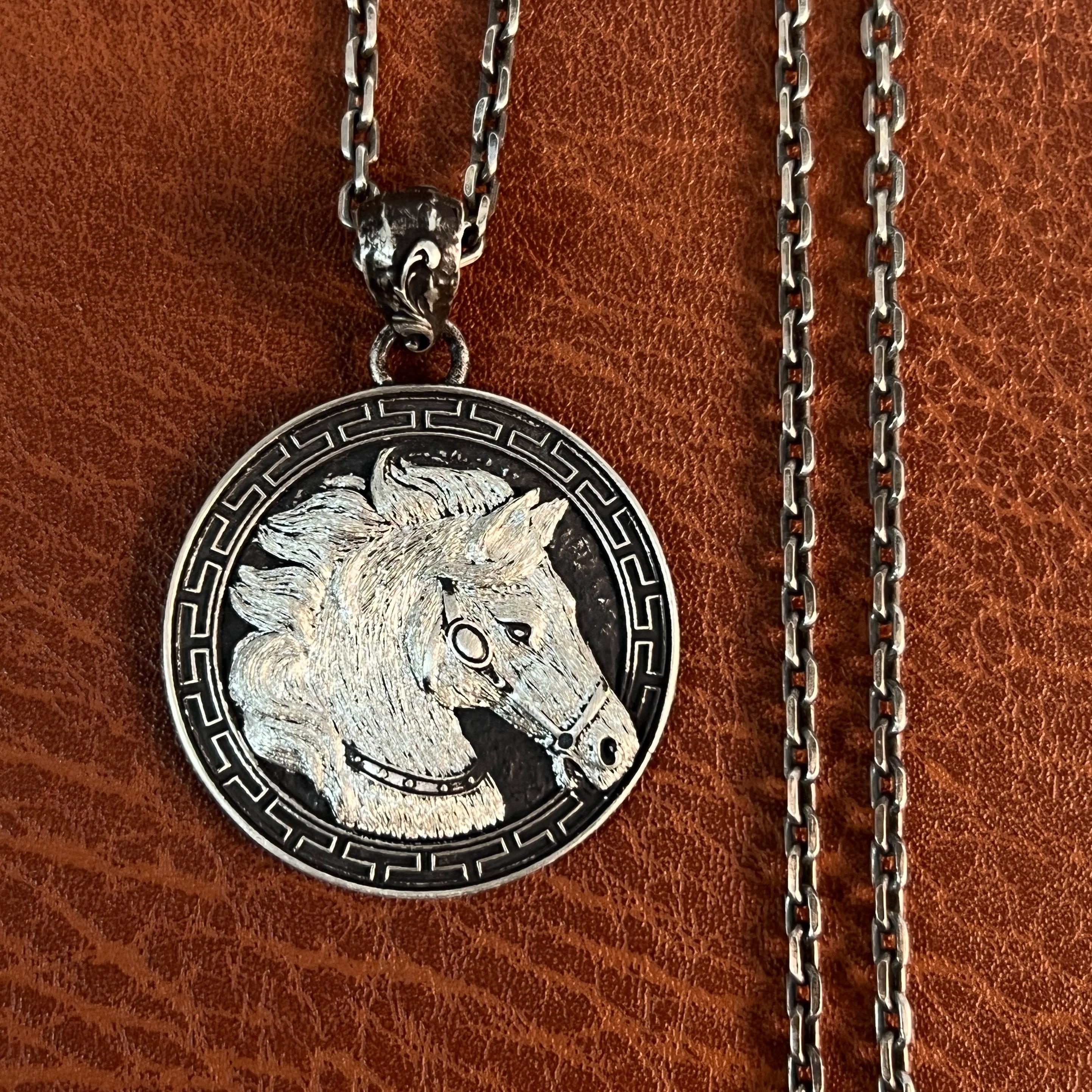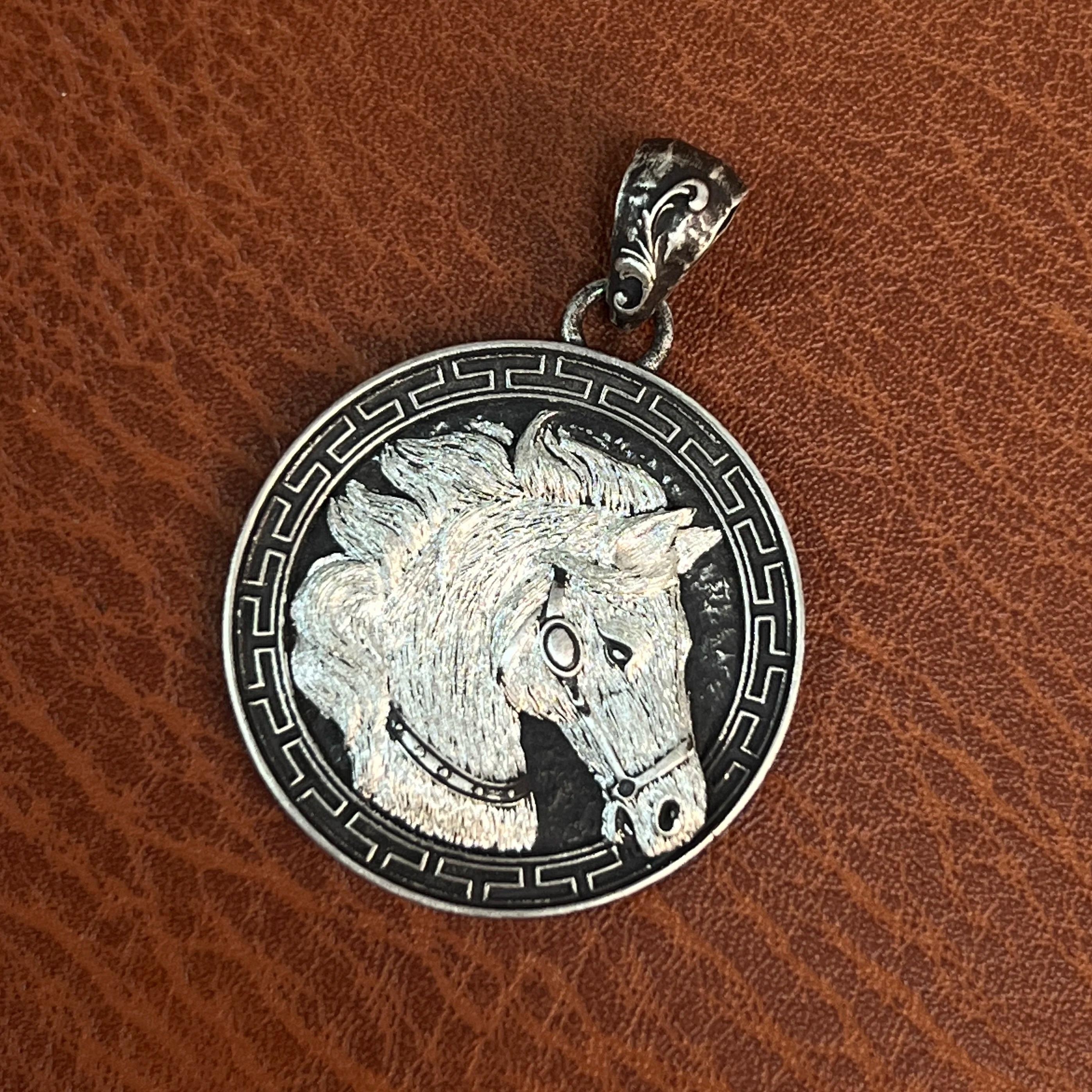 Paard hanger Grieks motief - 925 Zilver