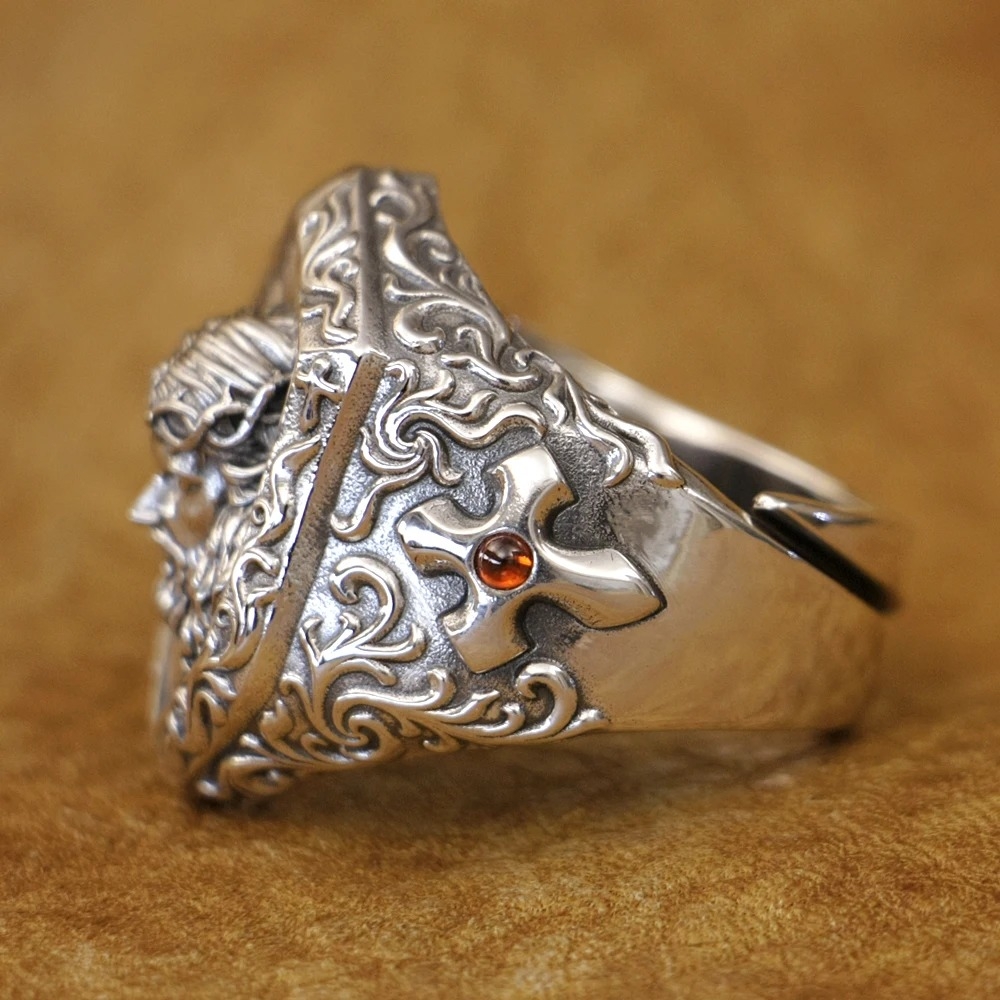 De gedetailleerde gravures versterken de historische en spirituele uitstraling. Gemaakt van hoogwaardig metaal, biedt de ring duurzaamheid en comfort voor dagelijks gebruik. Het ontwerp roept de geest op van ridders en krijgers die hun eed van eer hooghielden. Een tijdloos sieraad voor wie staat voor kracht, geloof en rechtvaardigheid.